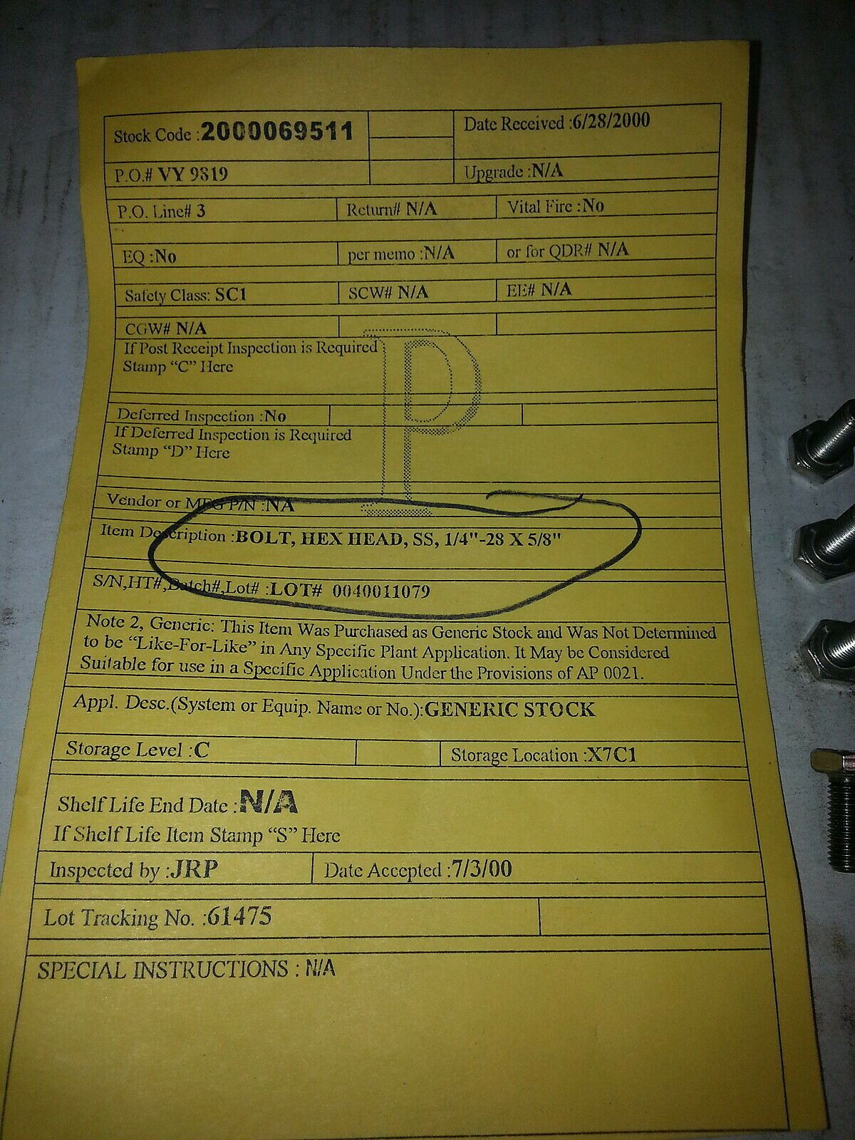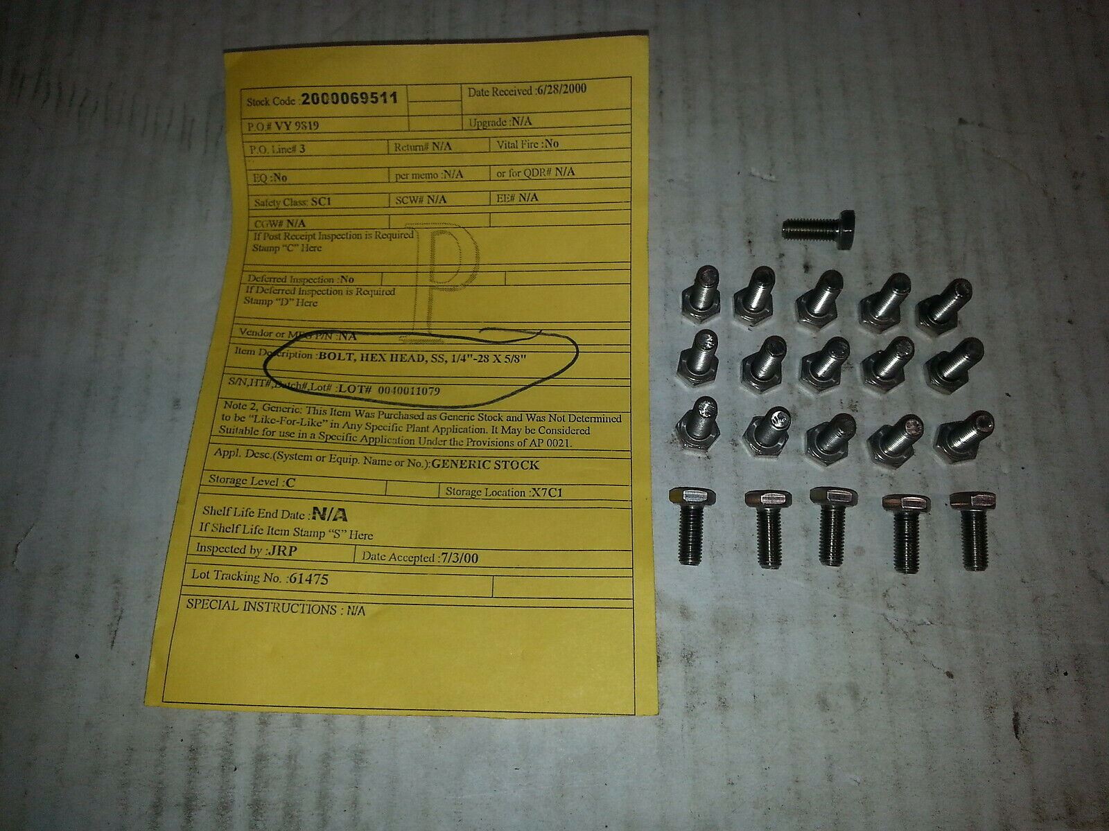 BOLT, HEX, HEAD, SS , 1/4"-28 X 5/8" ,,, LOT OF 20