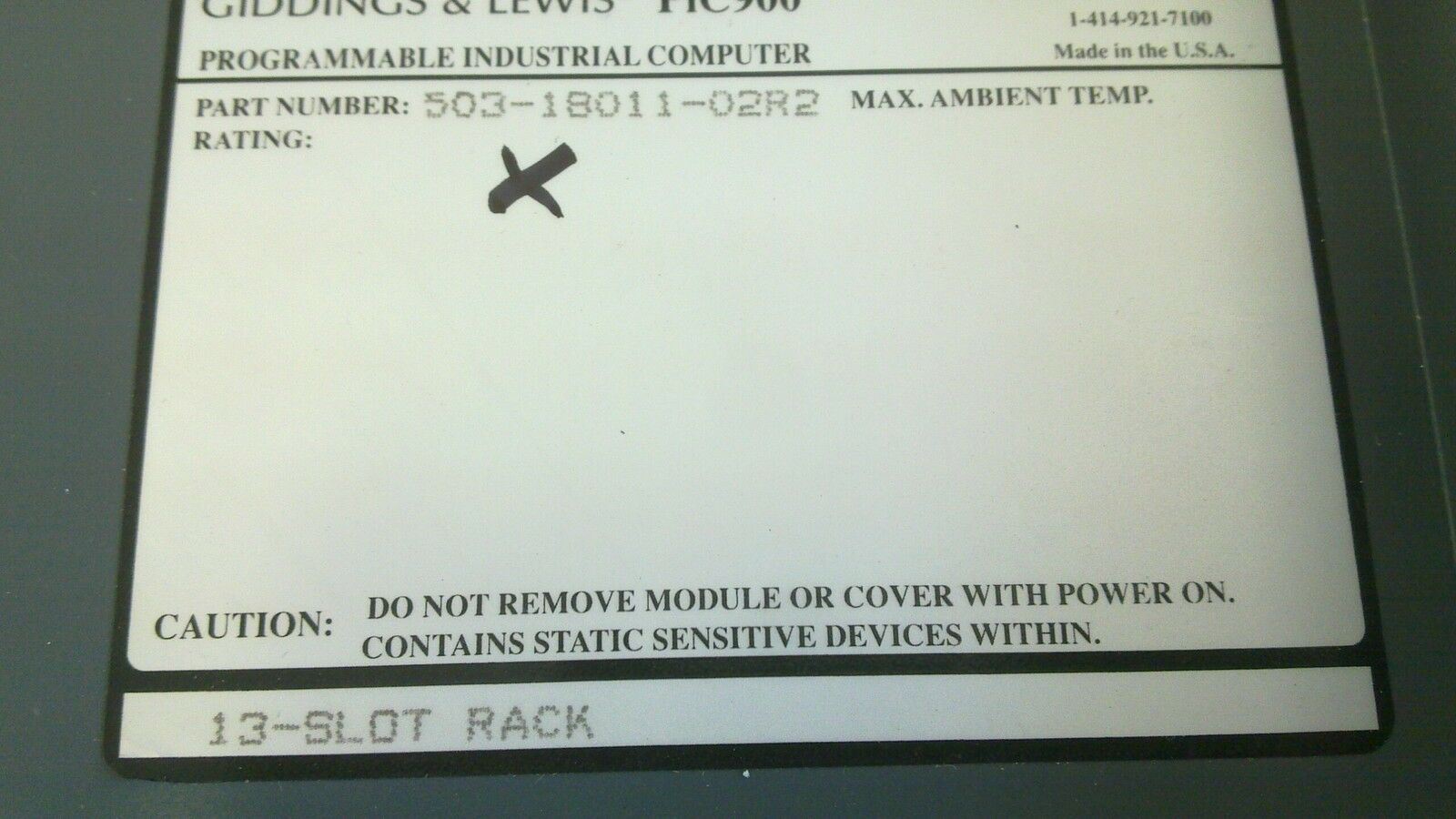 GIDDINGS & LEWIS 503-18011-02R2 13 SLOT RACK