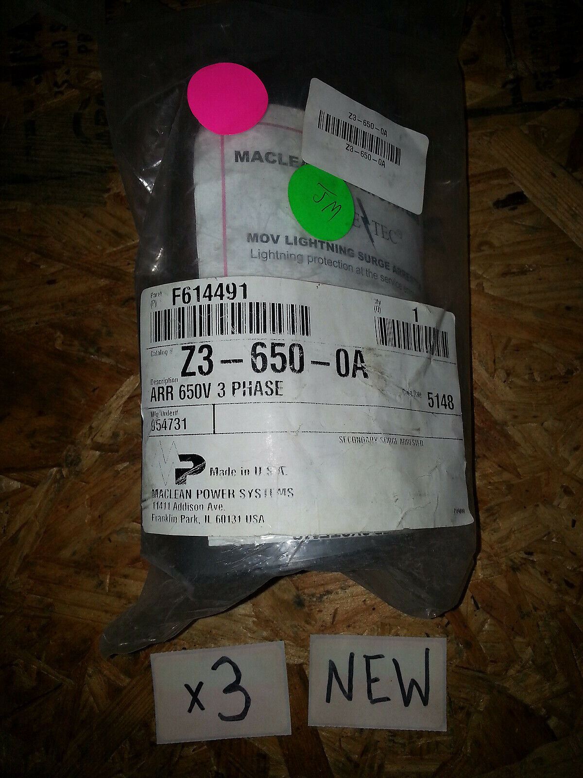 NIB JOSLYN SURGE ARRESTOR Z3-650-0A 650V 3 PHASE F614491