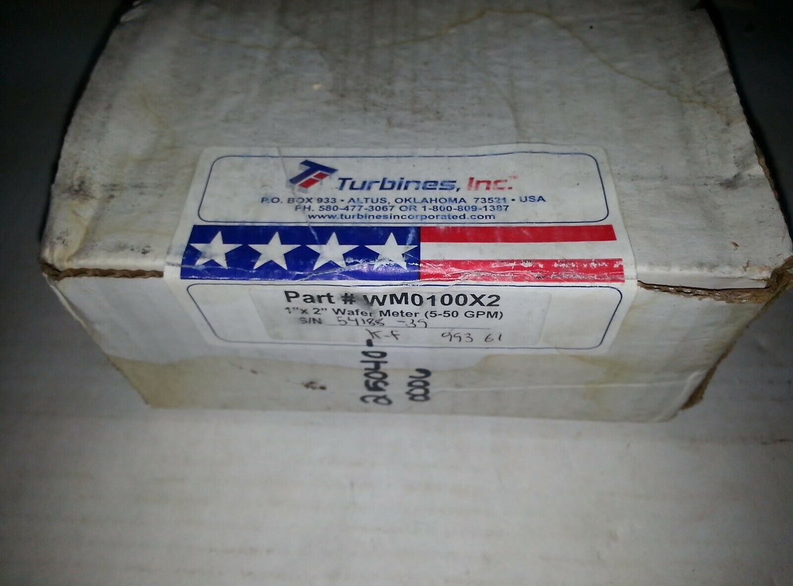 NiB Turbines WM0100X2 wafer turbine flowmeter 5-50 GPM 1"X2" ...EACH