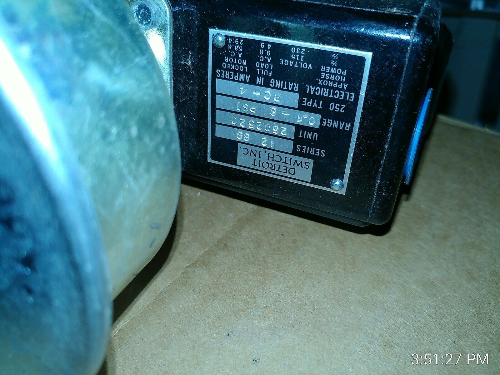DETROIT SWITCH INC. 250 PRESSURE CONTROL SWITCH SERIES 250 TYPE RC4