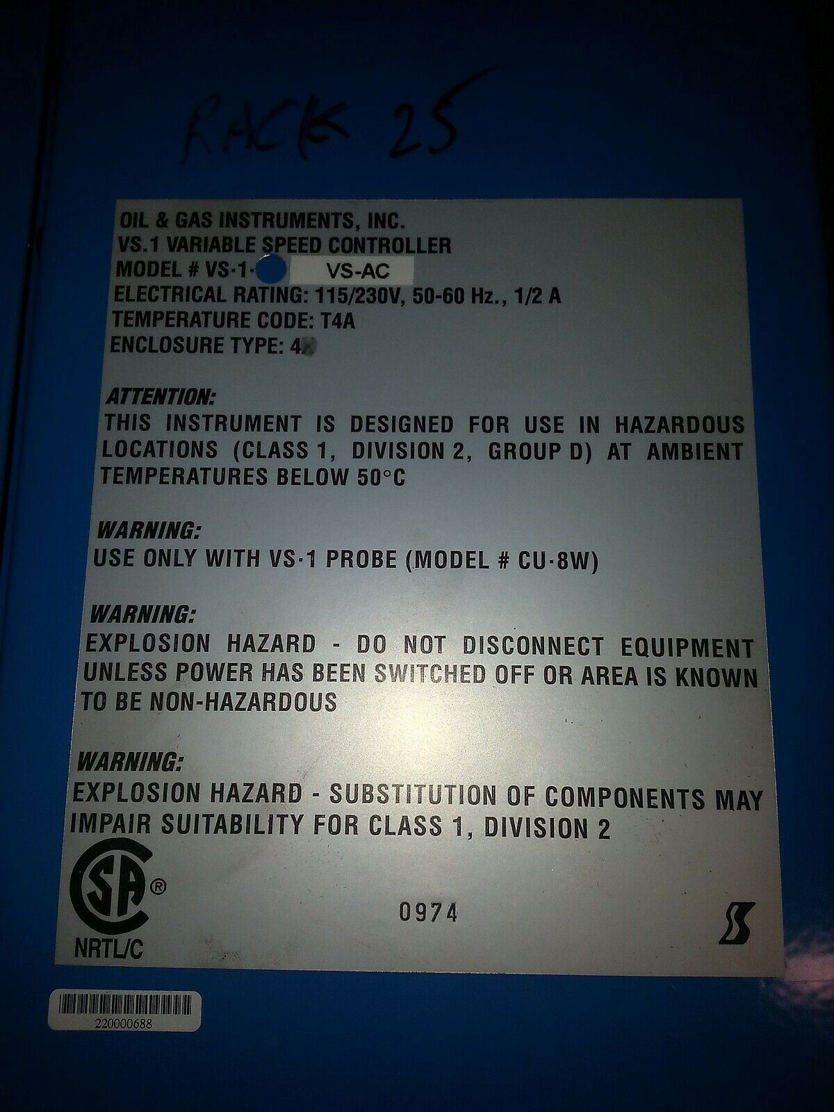 OIL & GAS INSTRUMENTS, INC. M/N. VS-1 VS-AC