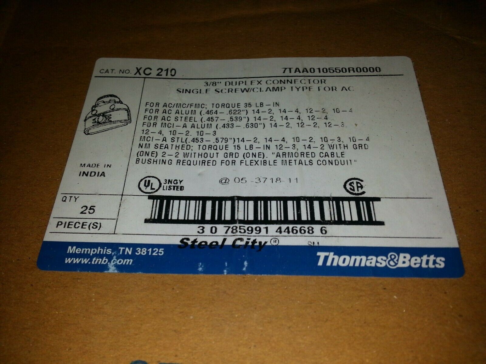 THOMAS & BETTS XC 210 7TAA010550R0000 3/8" DUPLEX CONNECTOR ... 5/LOT